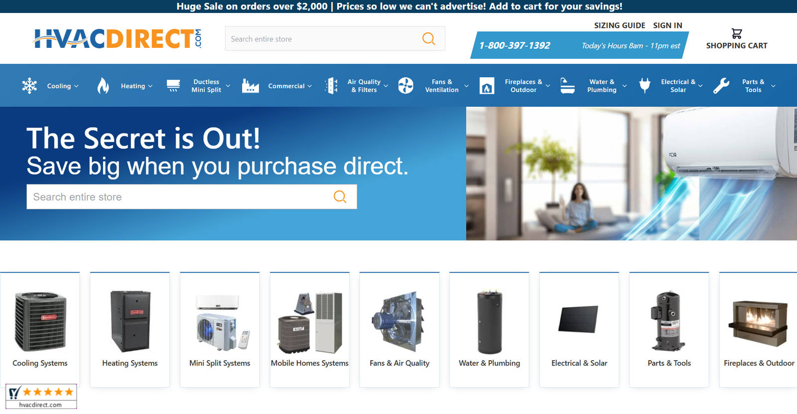 This supplier guarantees the lowest price. It aims to ensure the most affordable HVAC systems are within arm’s reach, honoring even lower costs from legitimate competitors by 10%. HVAC Direct also partners with Bread Pay to deliver financing plans up to 24 months, so flexible repayment is easy and within your budget.