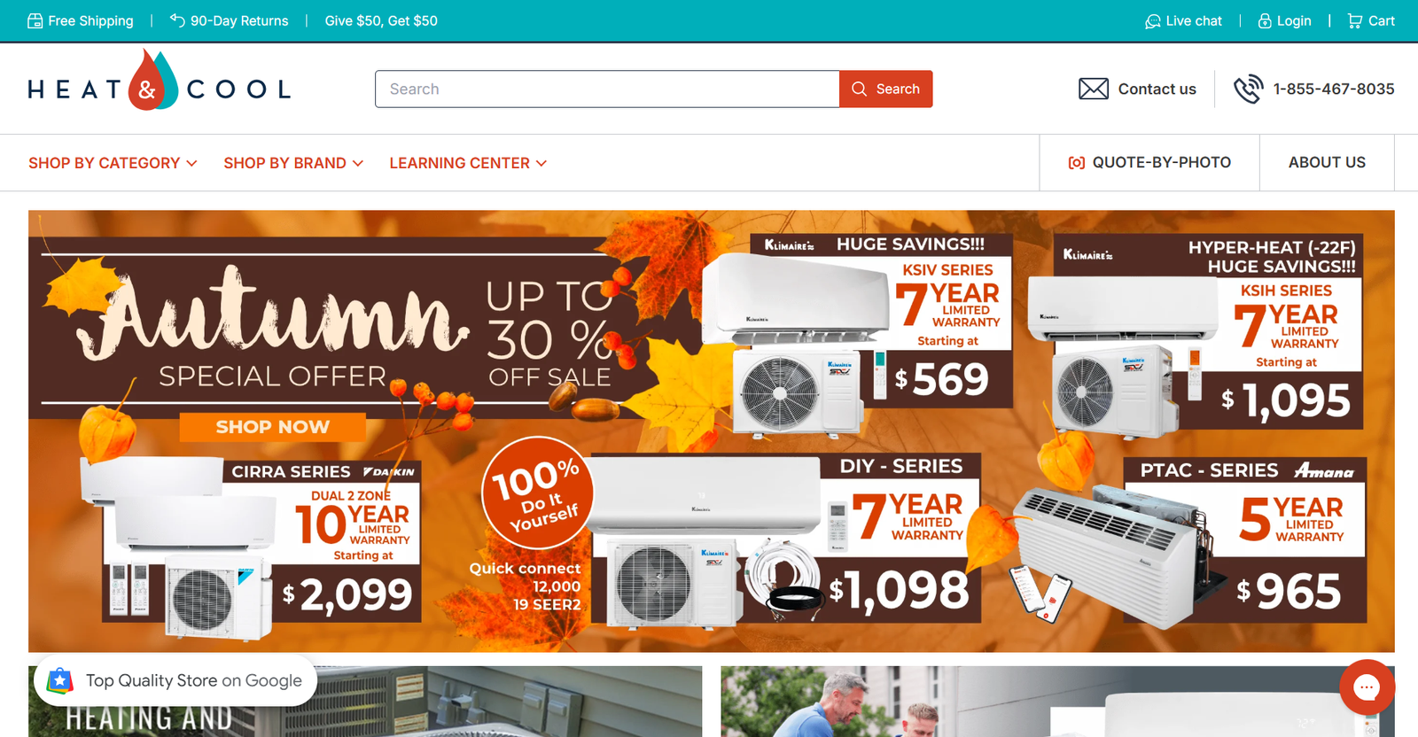 HeatAndCool.com supplies trusted name brands like Goodman, Daikan, Kilmaire, LG and Nest, ensuring your investment is reliable and long-lasting. It is an authorized dealer and distributor of all its inventory, so manufacturers recognize the warranty coverage and after-sales services. Take advantage of its free consultations with an expert team member who can recommend products based on your specifications and provide technical and installation services support. It also allows price matching on identical in-stock items with another 3% discount.